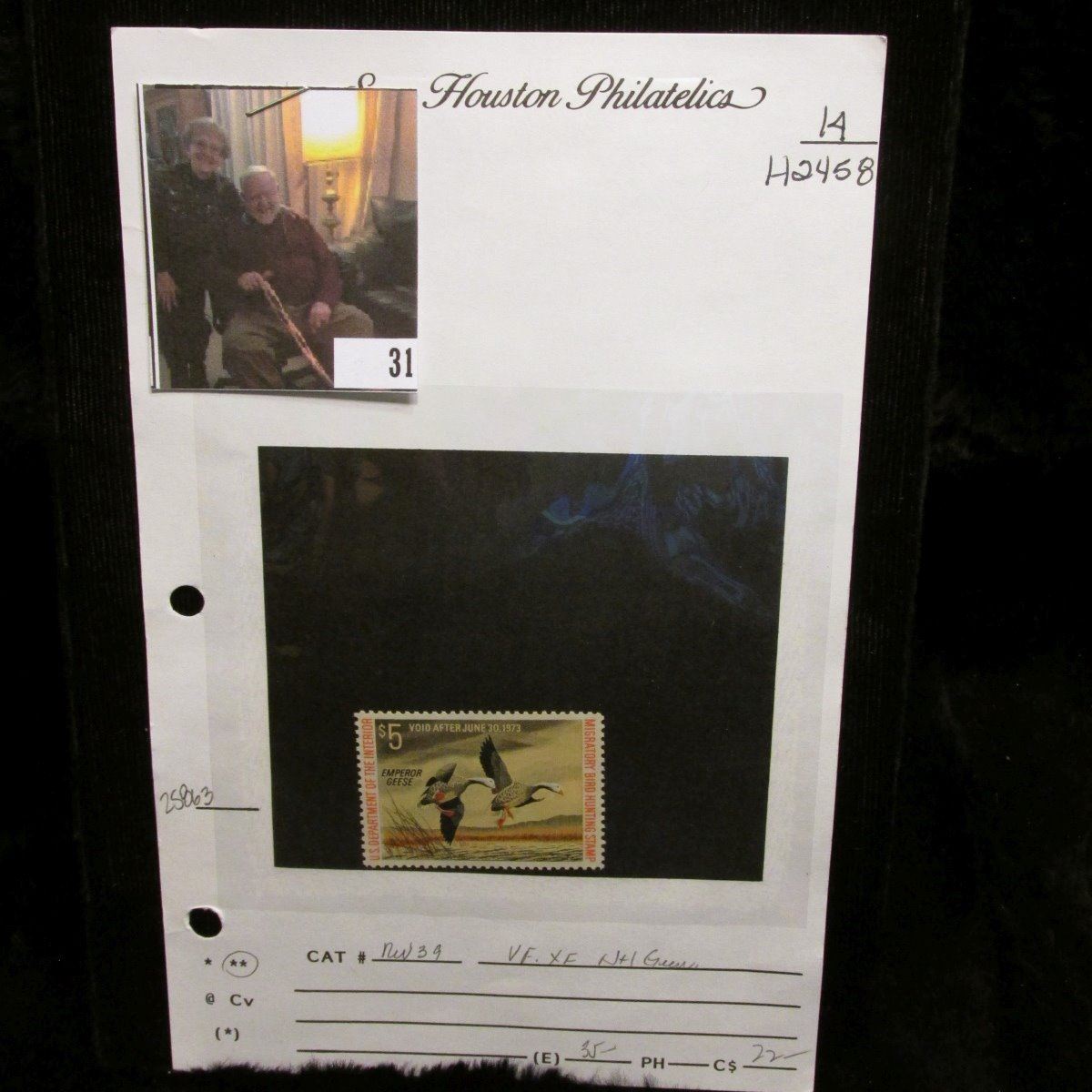 1972 $5 Federal Migratory Bird Hunting Stamp, OG, NH, VF. Scott RW39.