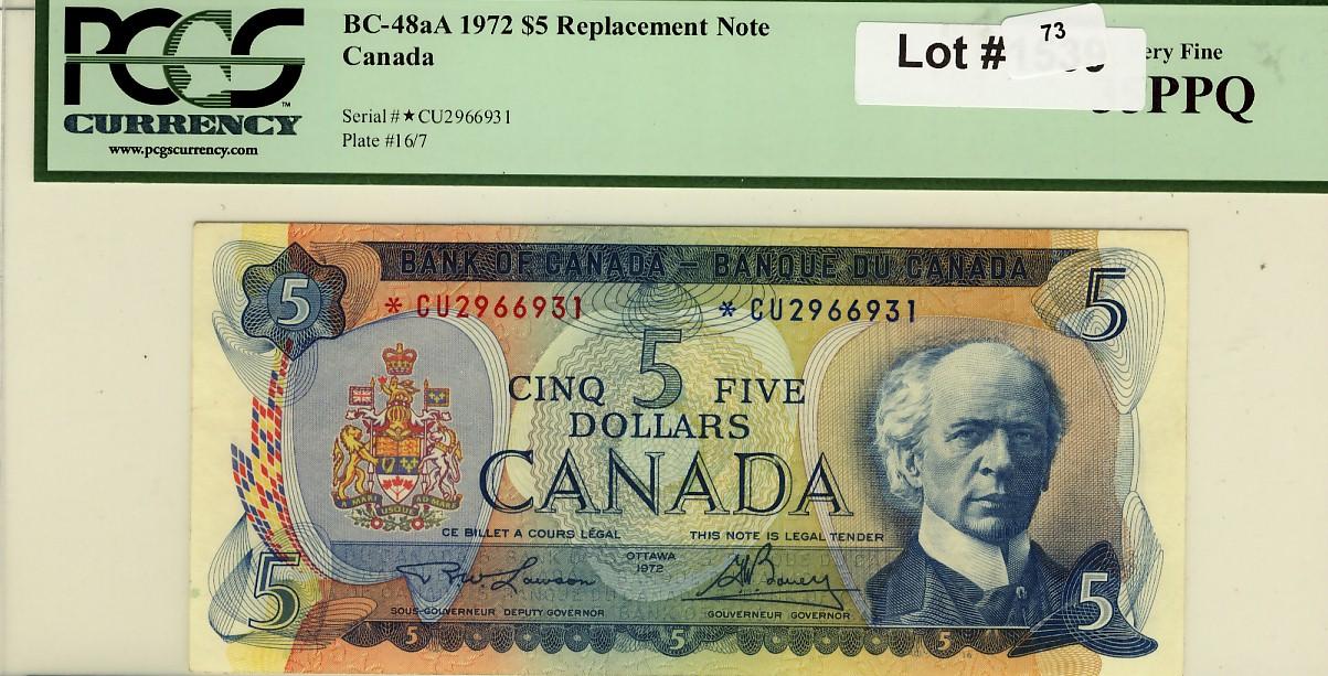 1972 $5 repl BC48aA *CU 2966931 PCGS 35 PPQ
