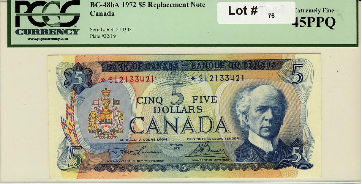 1972 $5 repl BC48bA *SL 2133421 PCGS 45 PPQ