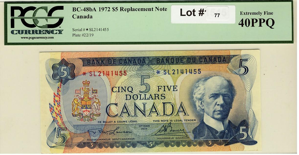 1972 $5 repl BC48bA *SL 2141455 PCGS 40 PPQ