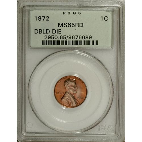 <B>1972/72 1C Doubled Die MS65 Red PCGS.</B></I> FS-033.3. Bold doubling on the date and the obverse lettering makes this a highly popular variety. Well struck and lustrous, this pleasing Gem also features rich orange-red coloration that yields to accents of ice-blue over Lincoln's portrait.<BR><BR><b>Shipping:</b> Coins & Currency (<a target="_blank" href="http://www.heritageauctions.com/common/shipping.php">view shipping information</a>)