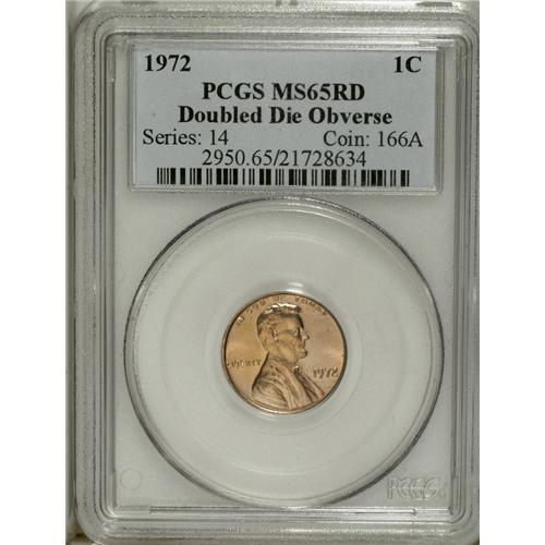 1972/72 1C Doubled Die MS65 Red PCGS. The obverse of t