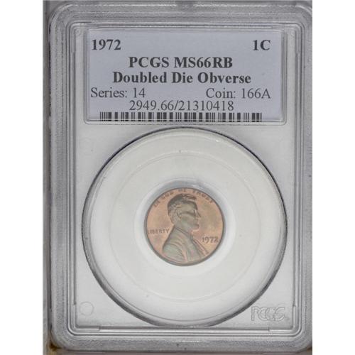1972/72 1C Doubled Die MS66 Red and Brown PCGS. FS-33. 1972/72[1C] Doubled Die MS66 Red and Brown PC