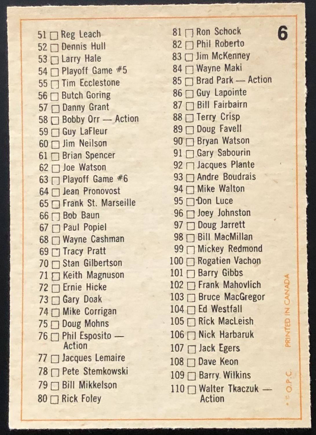 Card #6 NHL, hockey, vintage, OPC, hall of fame