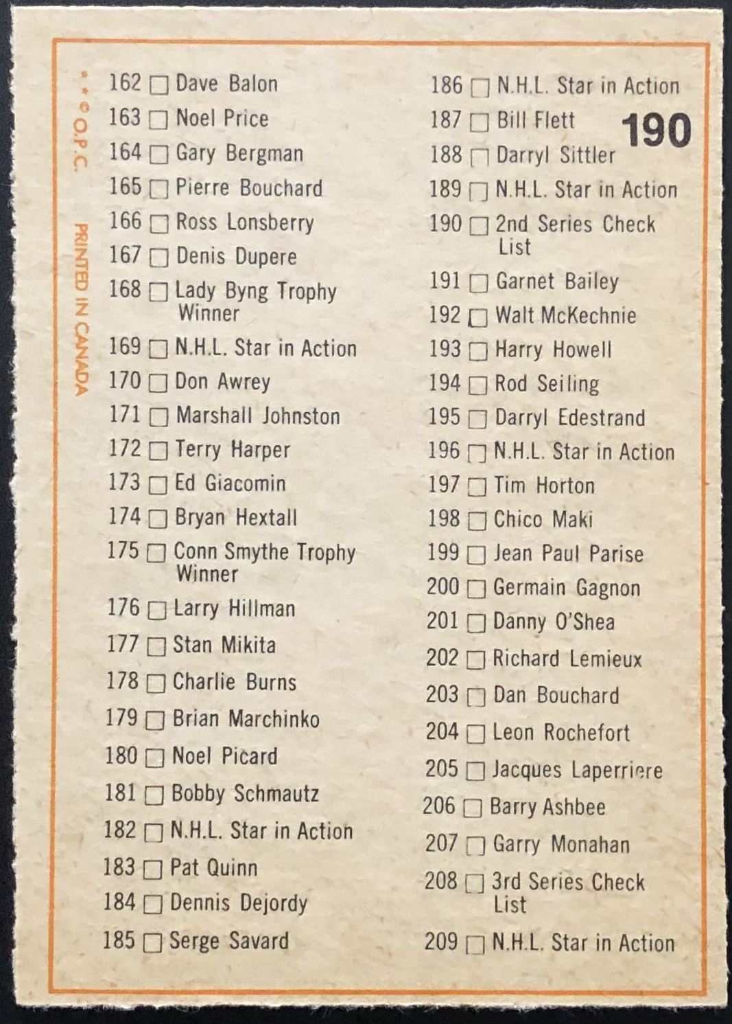 Card #190 NHL, hockey, vintage, OPC