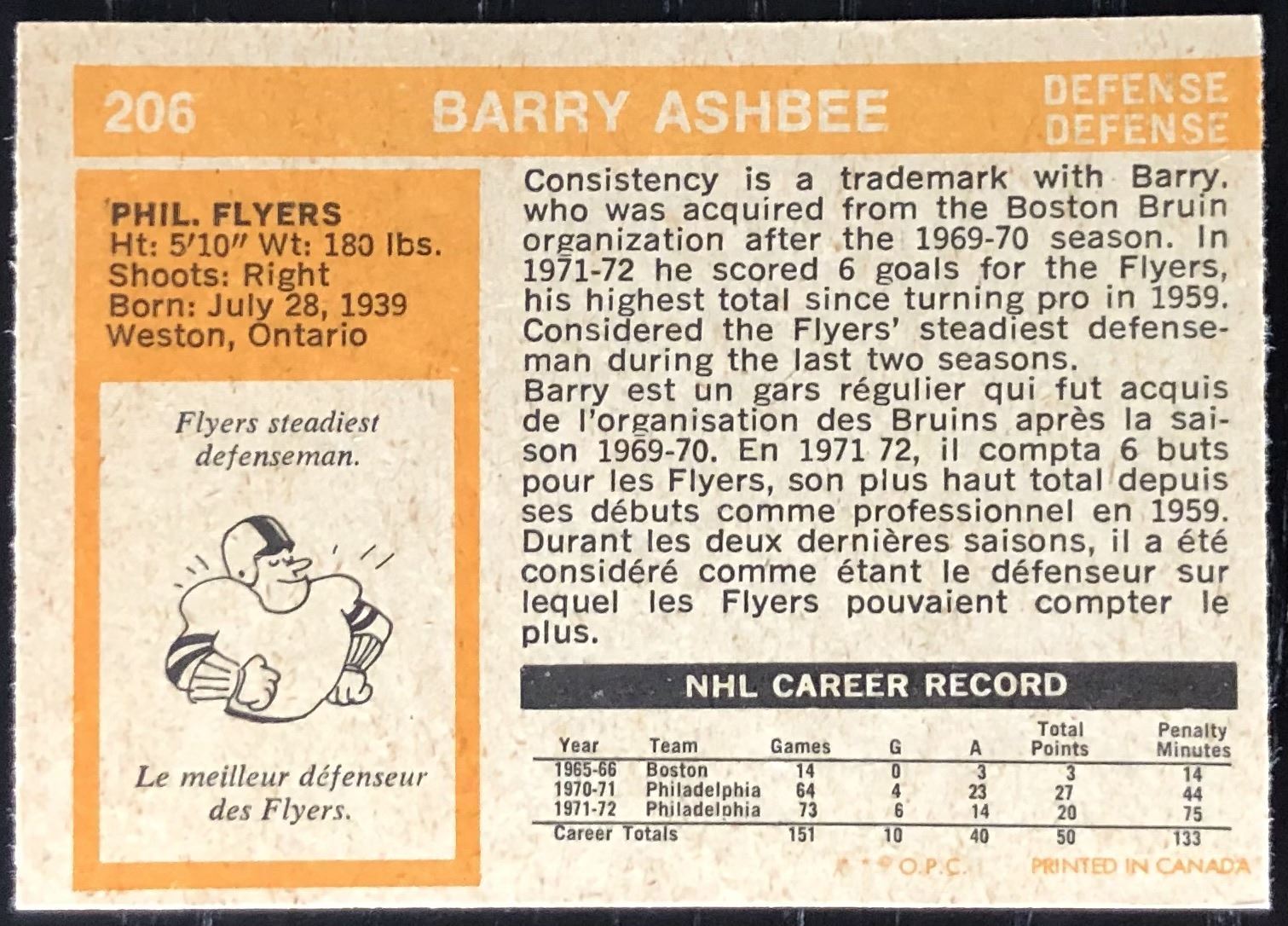 Card #206 NHL, hockey, vintage, OPC