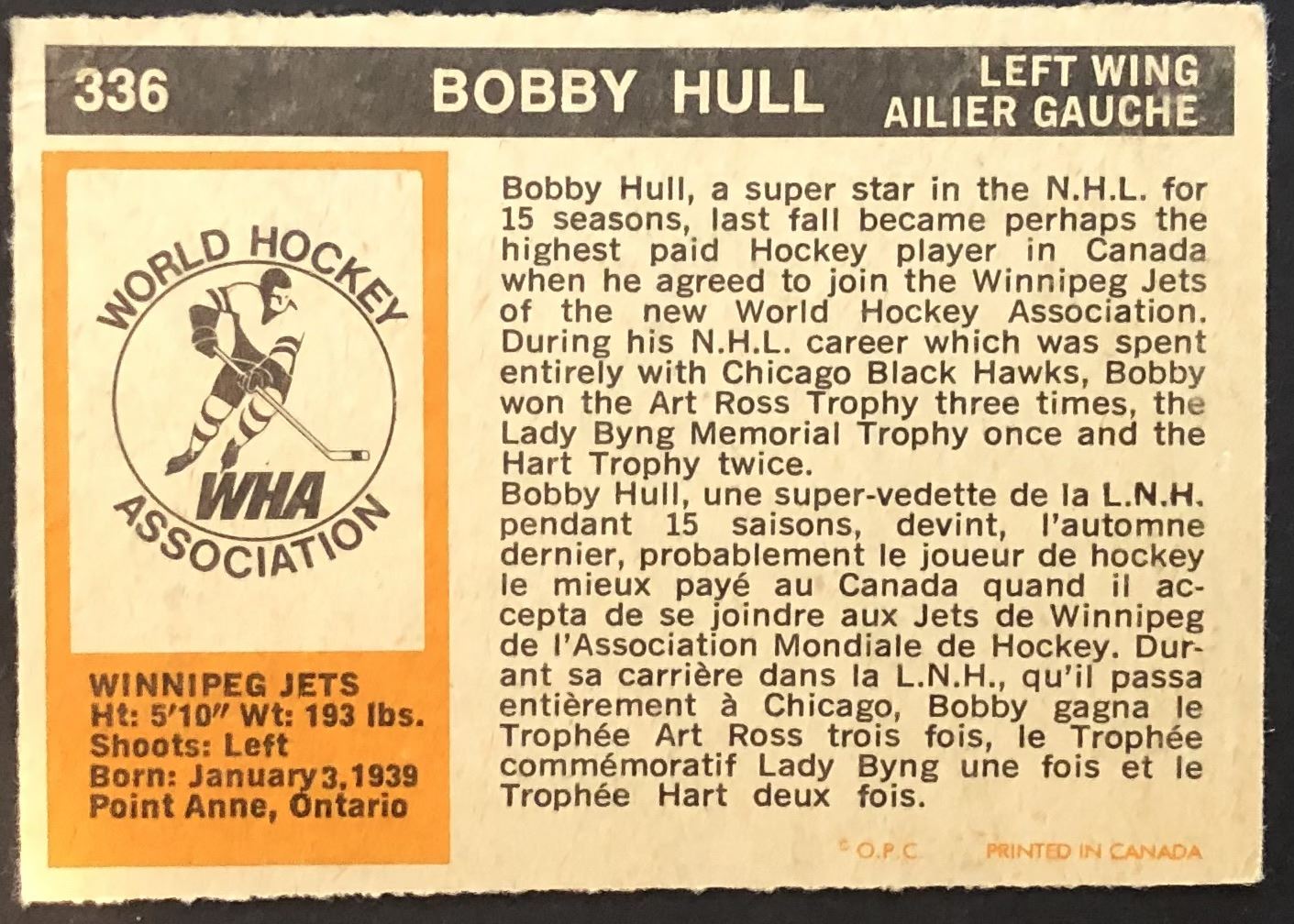 Card #336, some creasing vintage, WHA, hockey, OPC, hall of fame