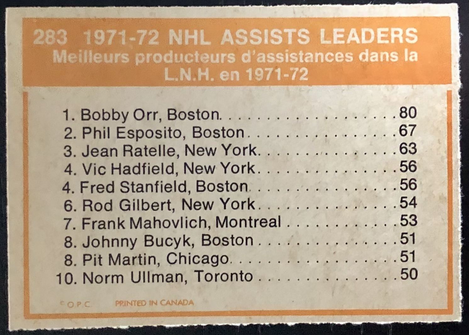 Card #283 NHL, hockey, OPC, hall of fame