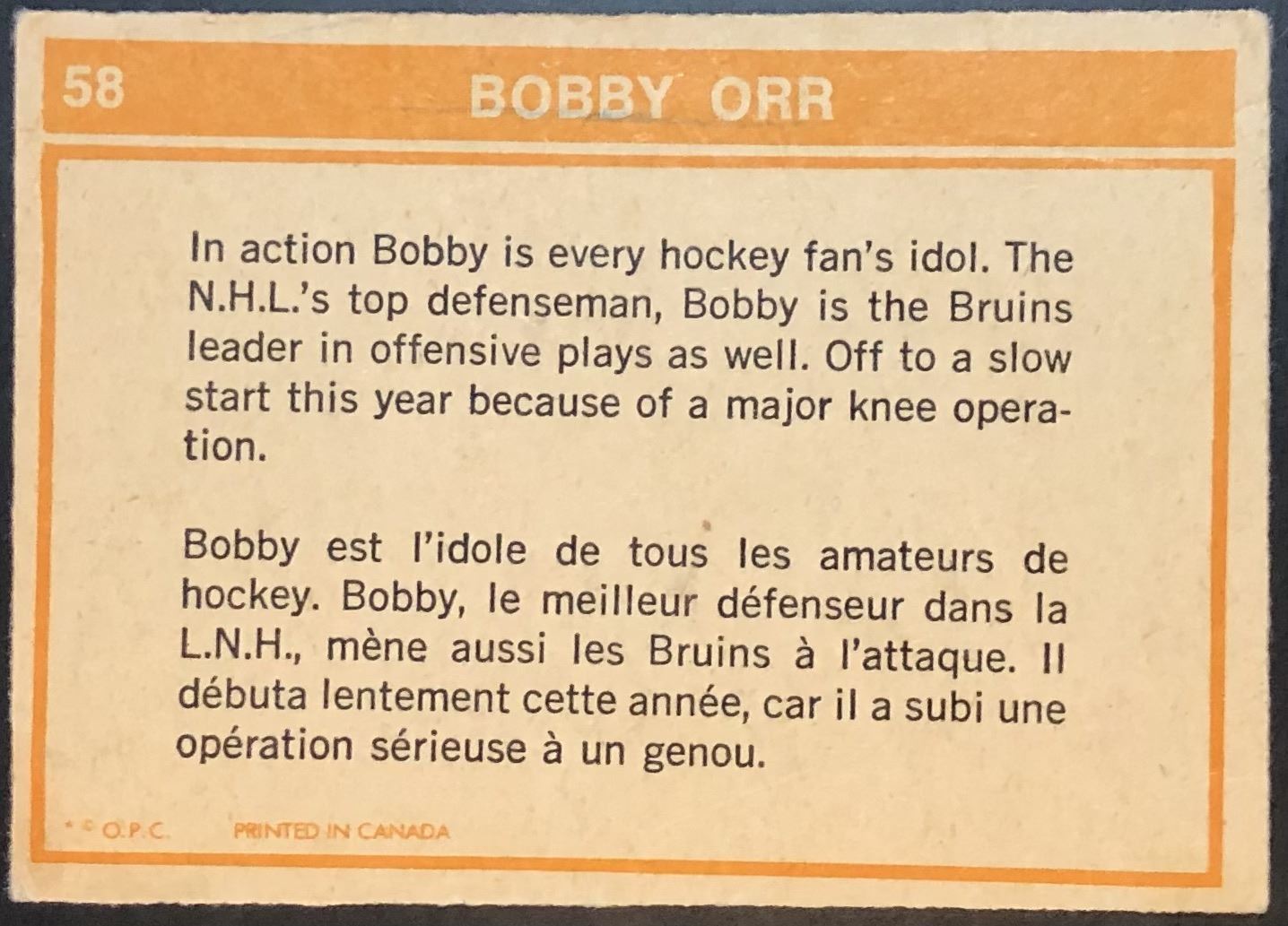 Card #58 NHL, hockey, OPC, vintage, hall of fame