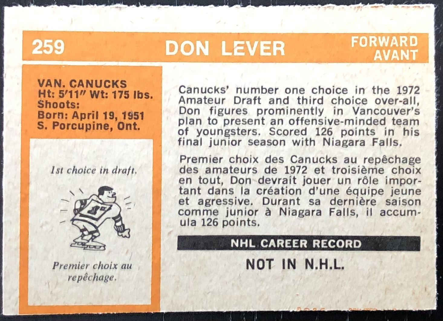 Card #259 NHL, hockey, vintage, rookie, OPC