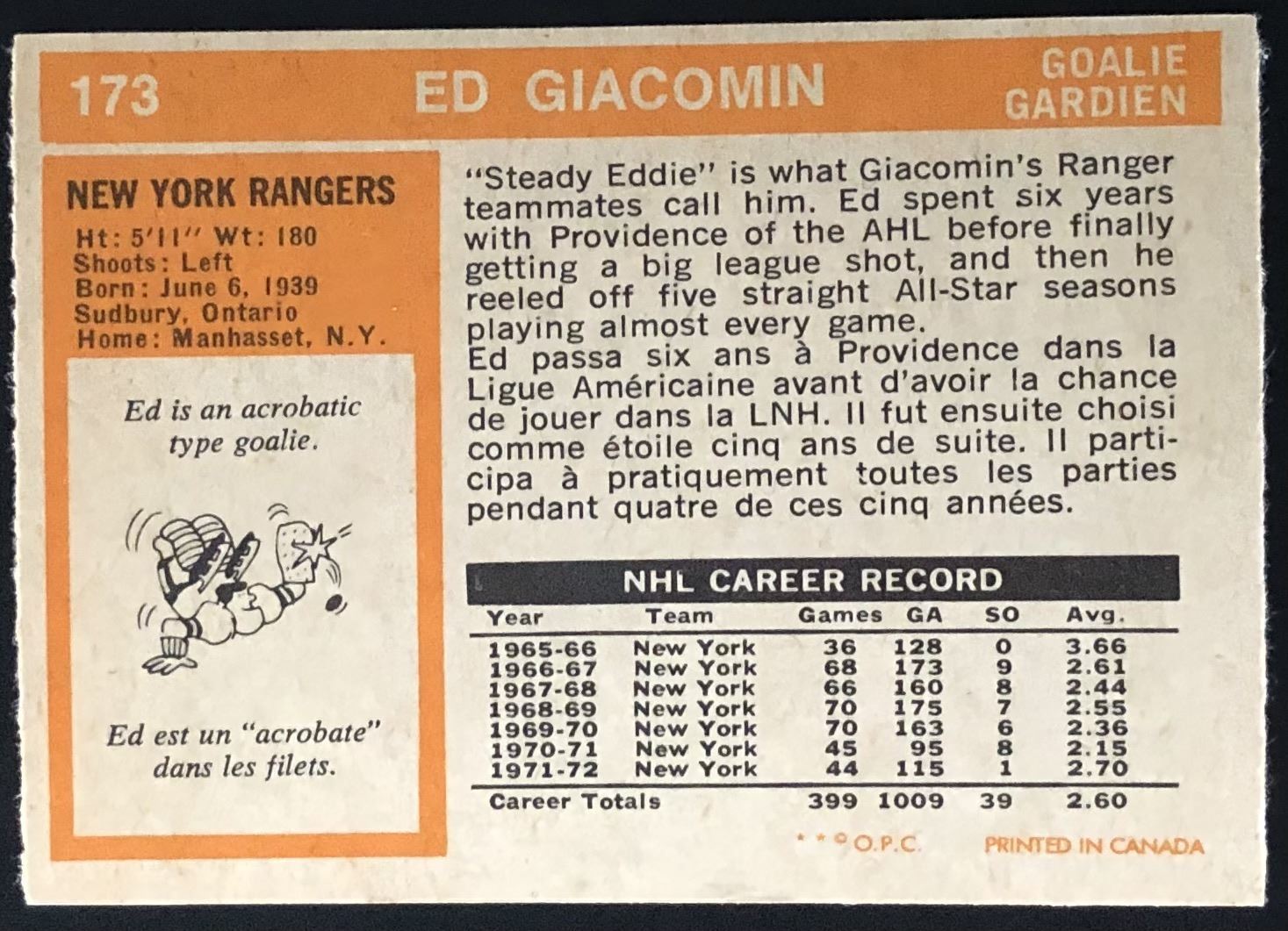 Card #173 NHL, hockey, vintage, OPC, hall of fame