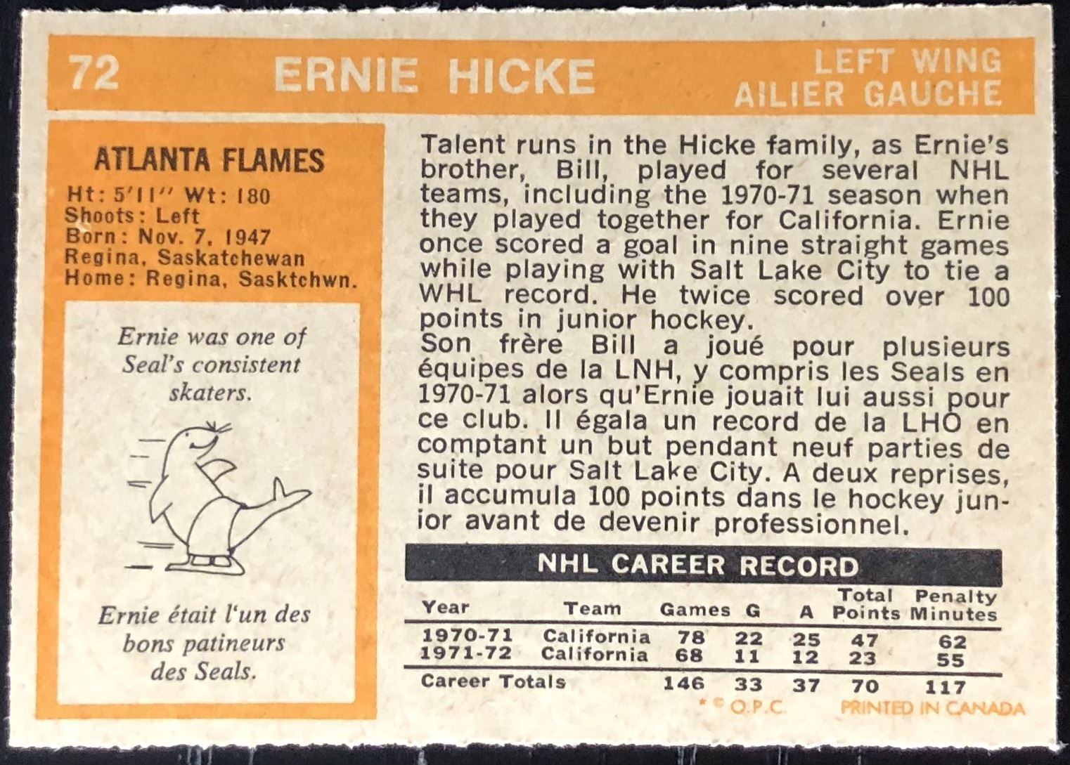 Card #72 NHL, hockey, vintage, OPC