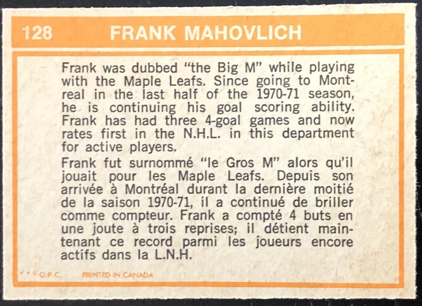 Card #128 NHL, hockey, vintage, hall of fame, OPC