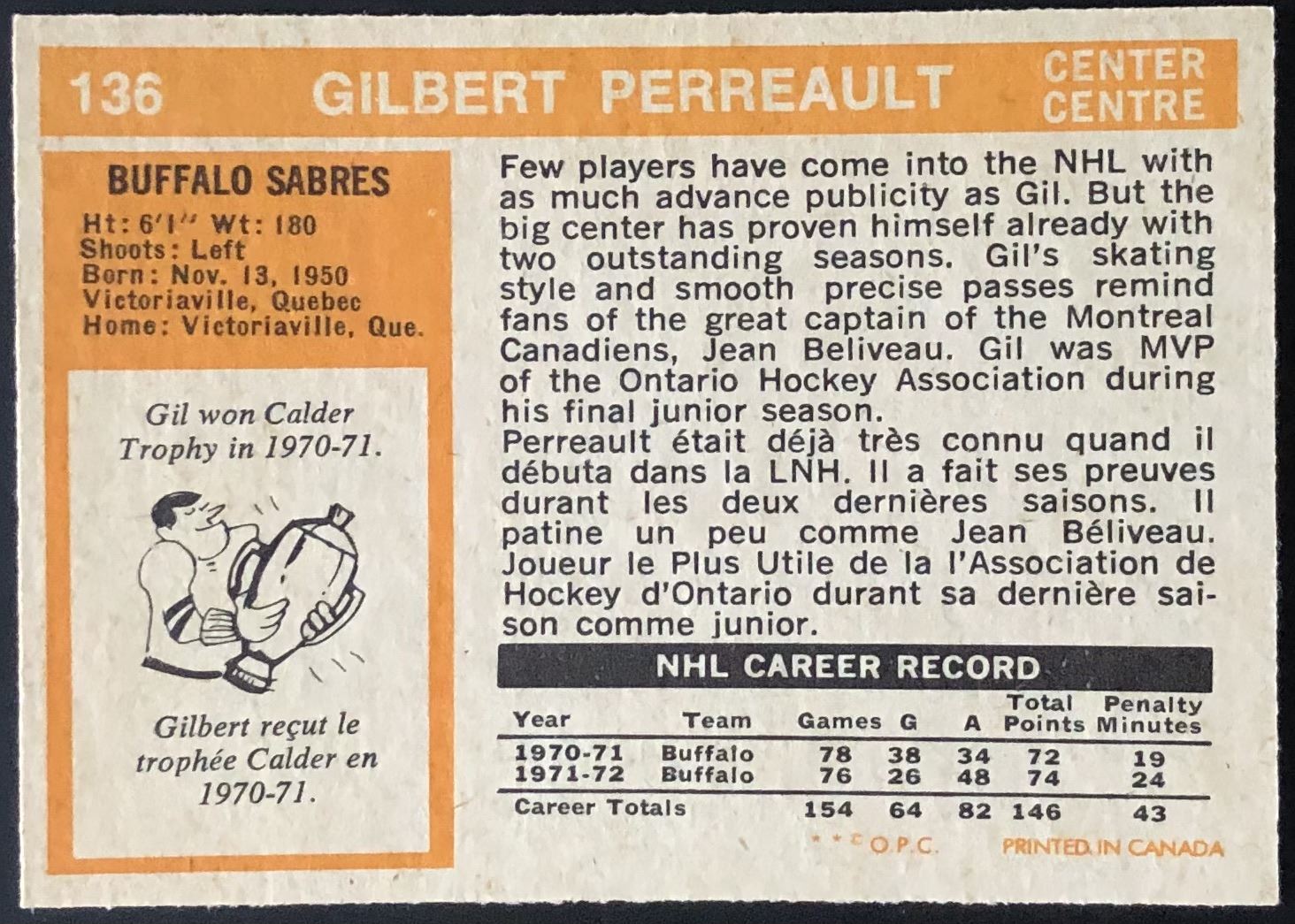 Card #136 NHL, hockey, vintage, OPC, hall of fame
