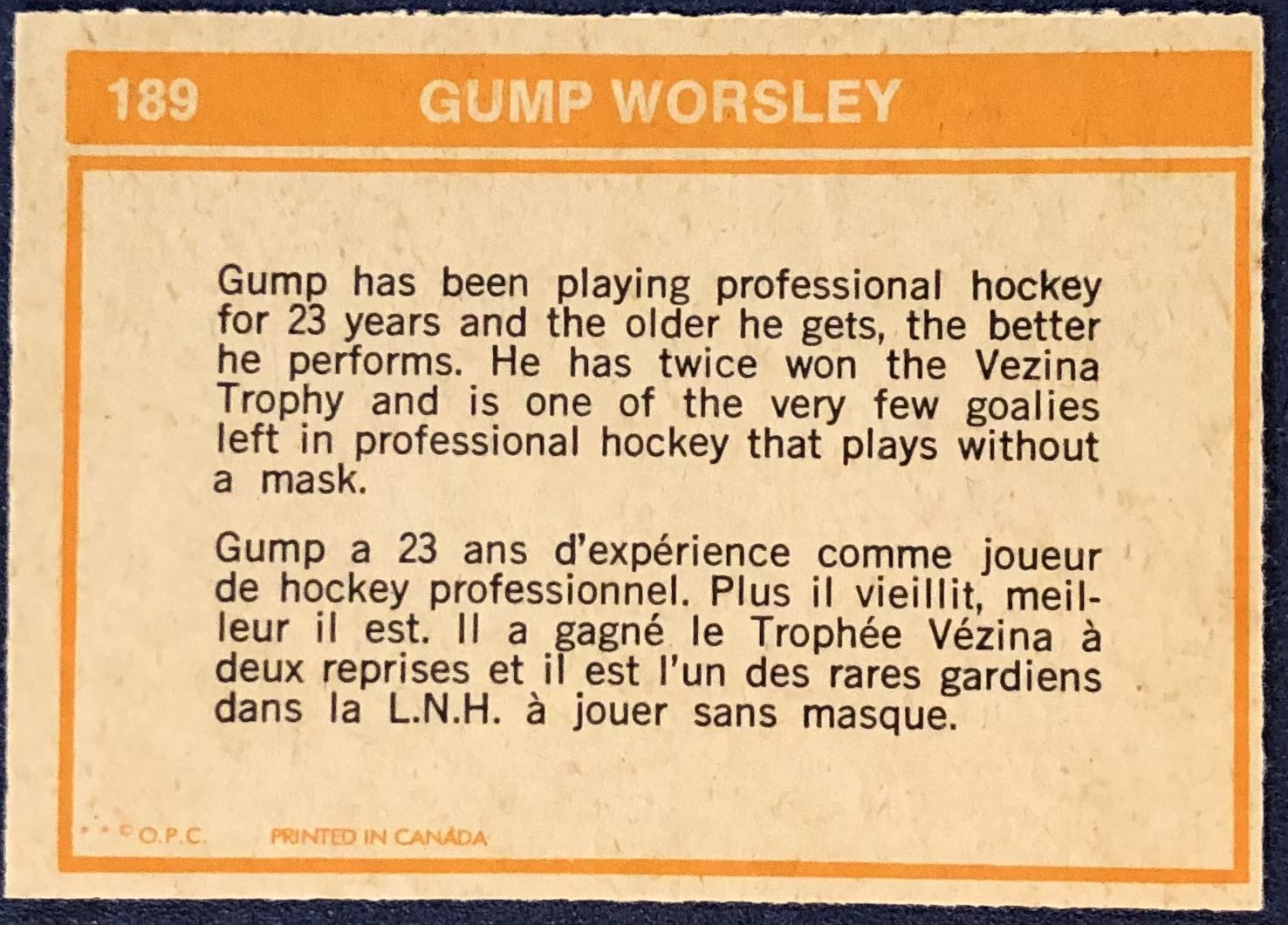 Card #189 NHL, hockey, OPC, vintage, hall of fame