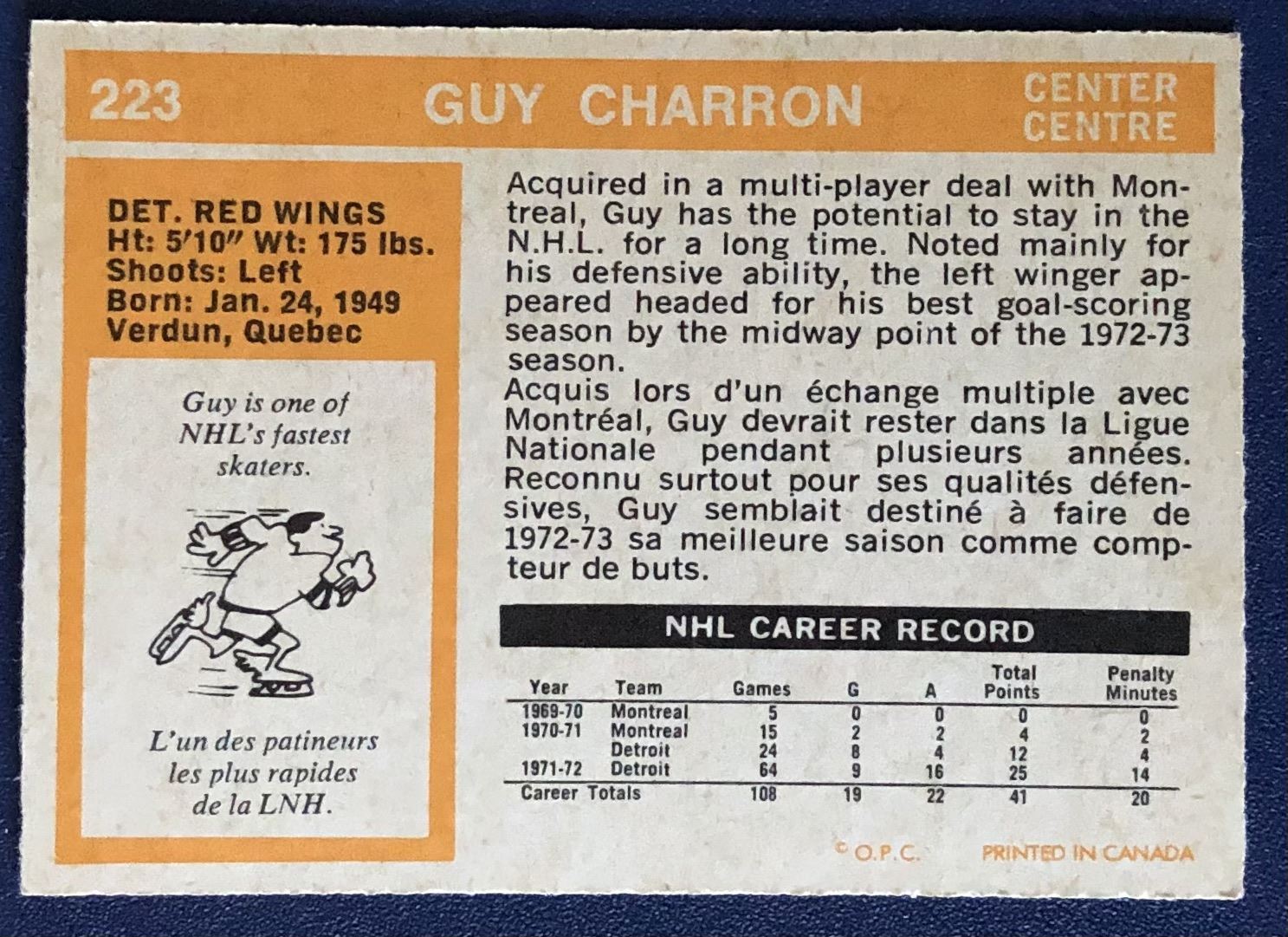 Card #223 vintage, rookie, hockey, NHL, OPC