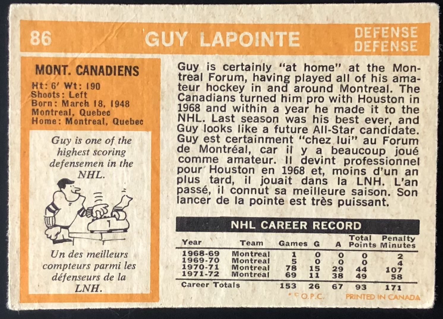 Card #86 OPC, vintage, NHL, hockey, hall of fame