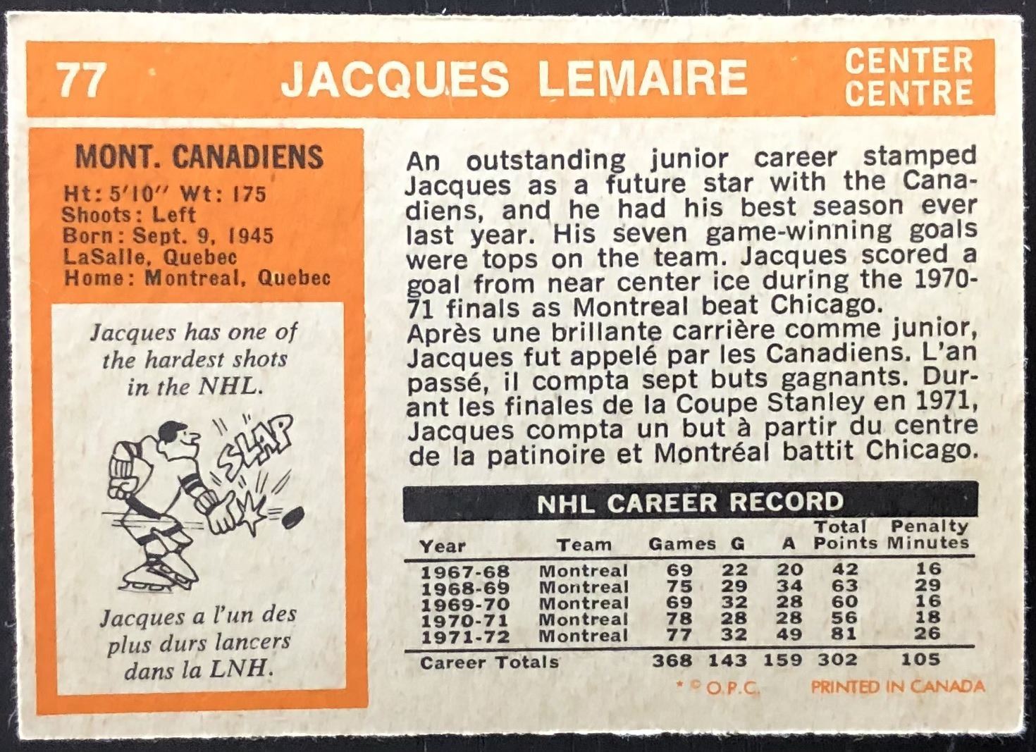Card #77 NHL, hockey, vintage, hall of fame, OPC