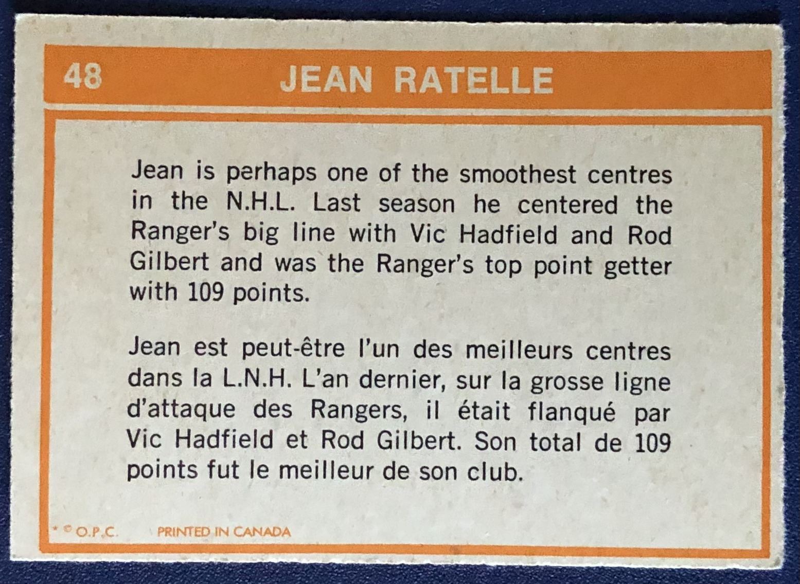 Card #48 vintage, hall of fame, hockey, NHL, OPC