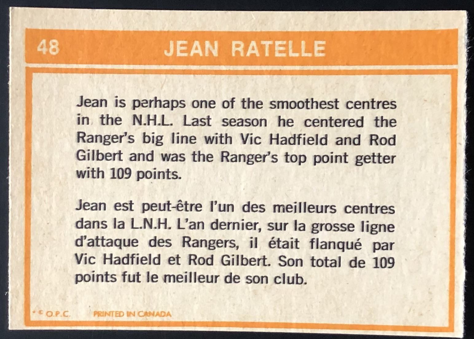 Card #48 OPC, vintage, NHL, hockey, hall of fame
