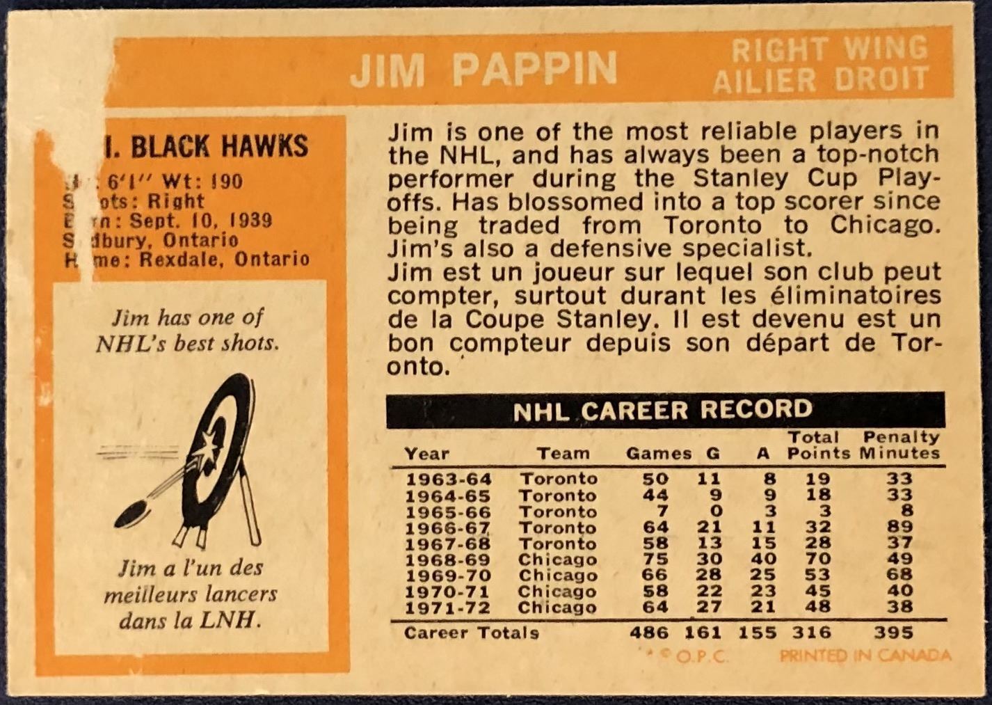 Card #42 (paper loss on back) NHL, hockey, vintage, OPC