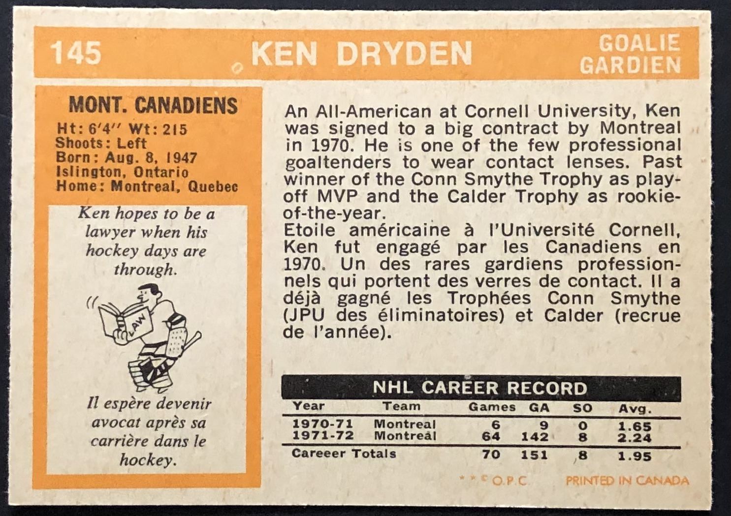 Card #145 NHL, hockey, vintage, hall of fame, OPC