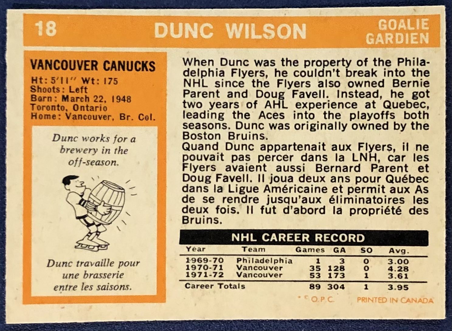 Card #18 NHL, hockey, vintage, OPC