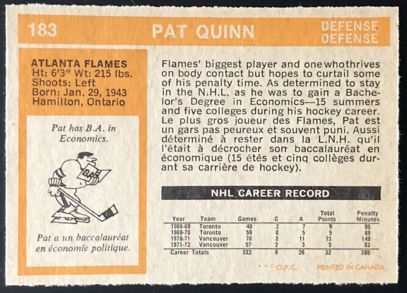 Card #183 NHL, hockey, vintage, OPC, hall of fame