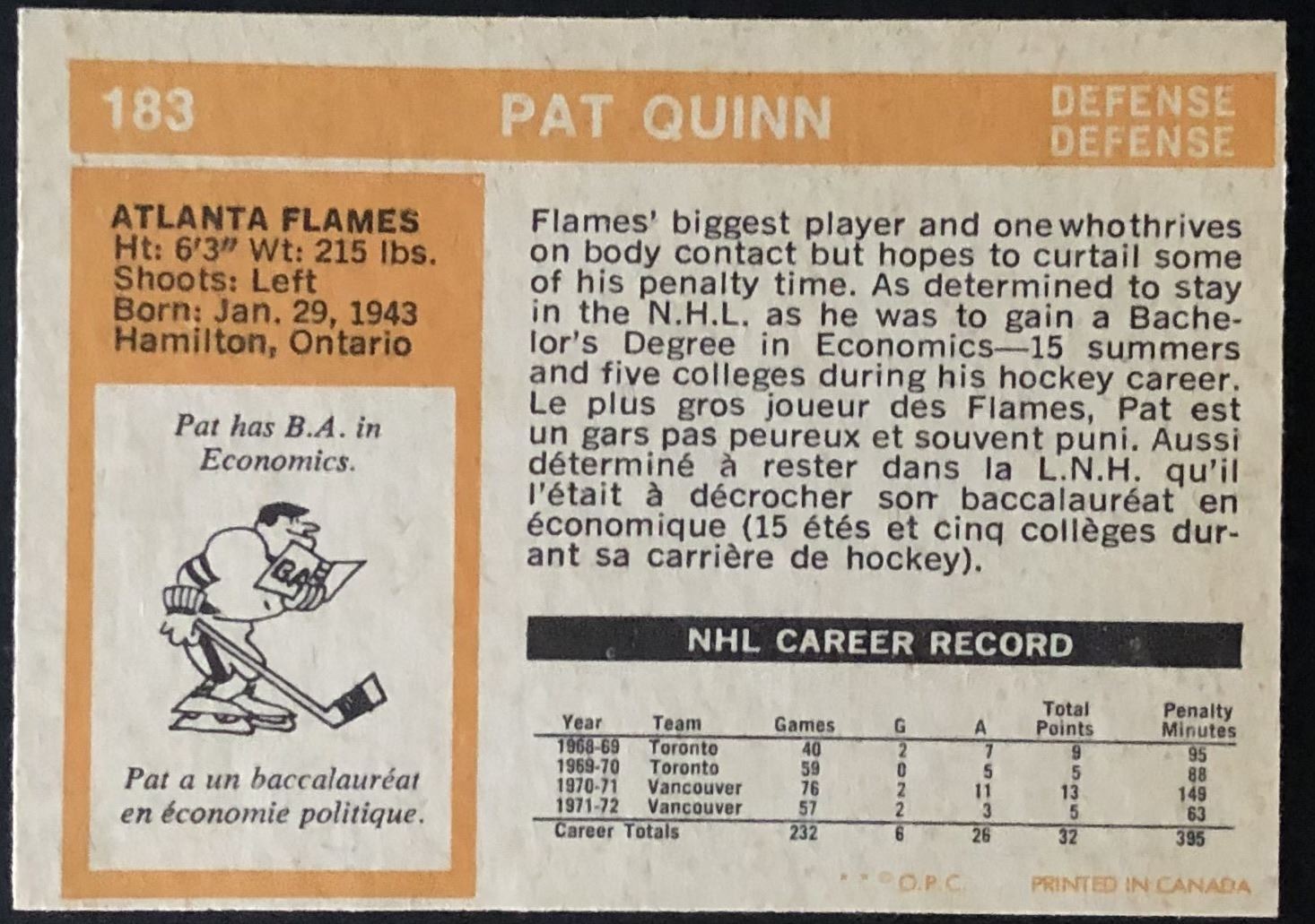 Card #183 OPC, vintage, NHL, hockey, hall of fame