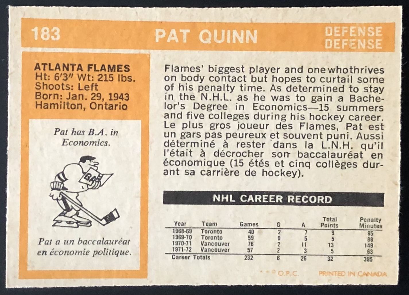Card #183 hockey, NHL, vintage, OPC, hall of fame