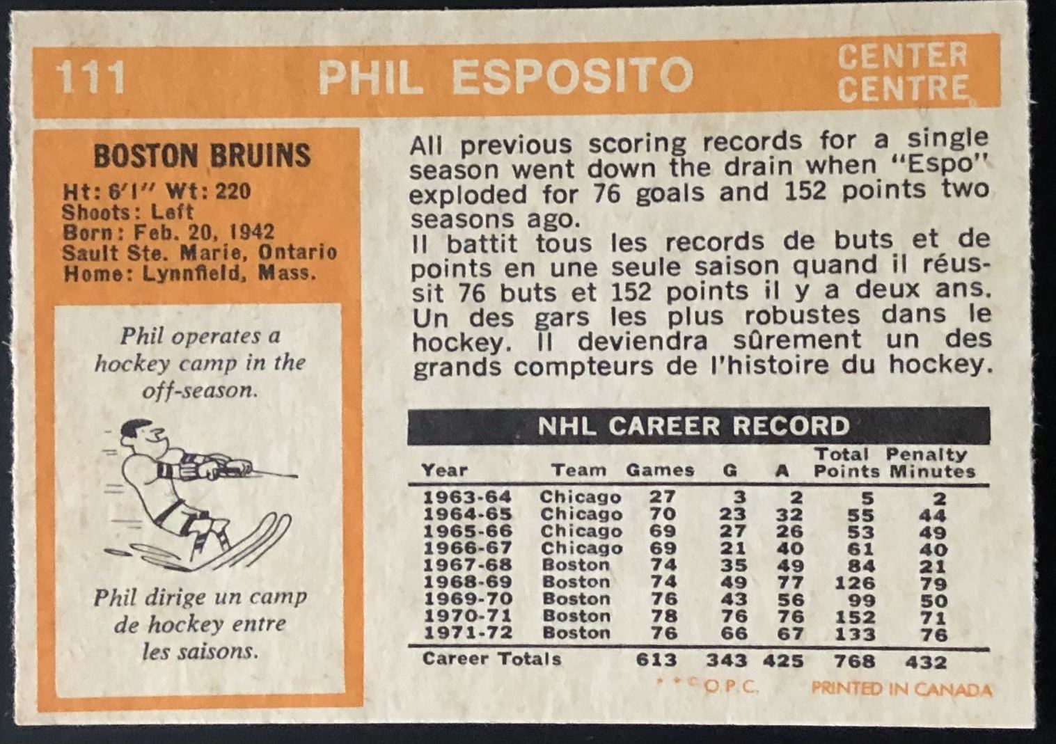 Card #111 NHL, hockey, vintage, OPC, hall of fame