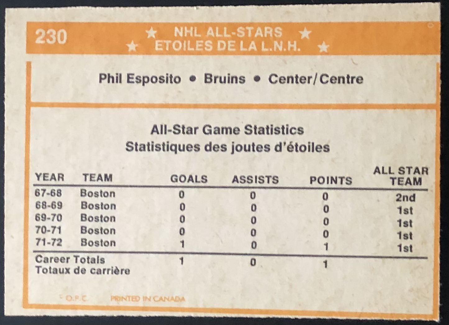 Card #230 NHL, hockey, vintage, OPC, hall of fame