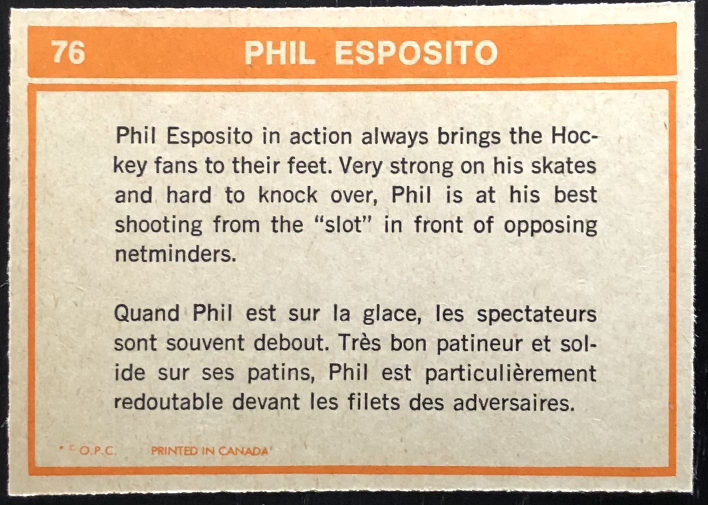 Card #76 NHL, hockey, vintage, OPC, hall of fame
