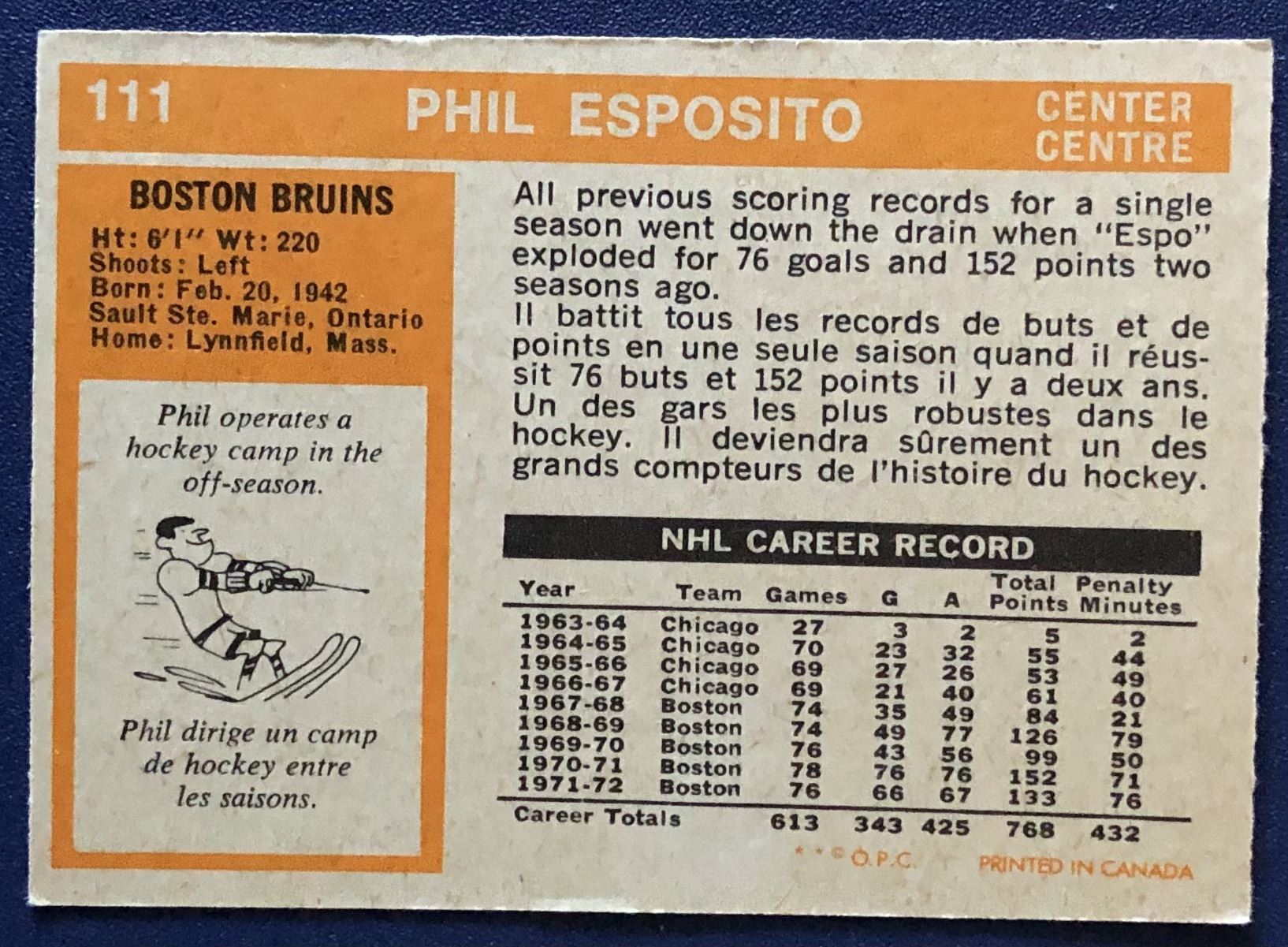Card #111 vintage, hall of fame, hockey, NHL, OPC