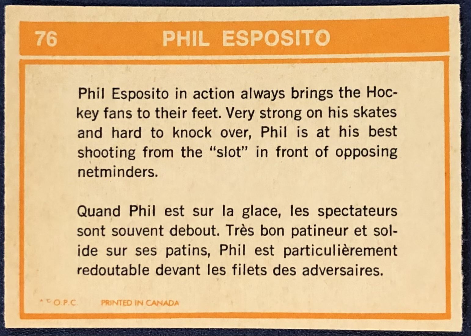 Card #76 NHL, hockey, OPC, vintage, hall of fame