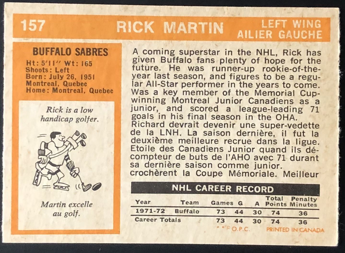Card #157 NHL, hockey, vintage, OPC, hall of fame
