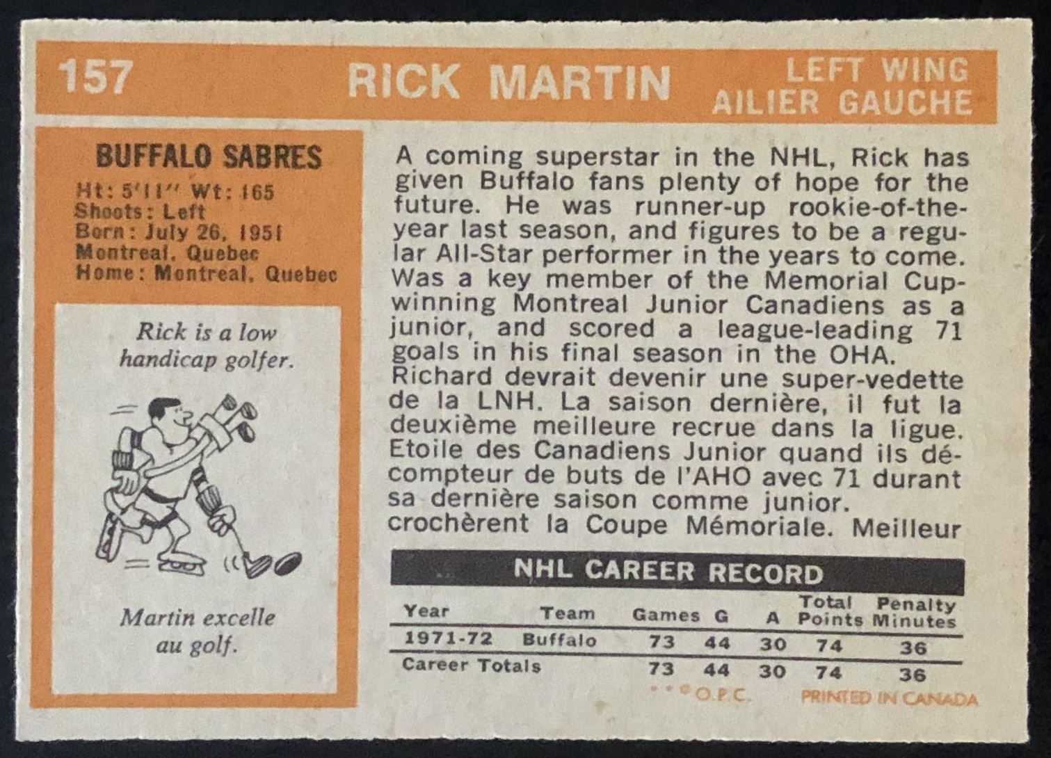 Card #157 OPC, vintage, NHL, hockey, hall of fame