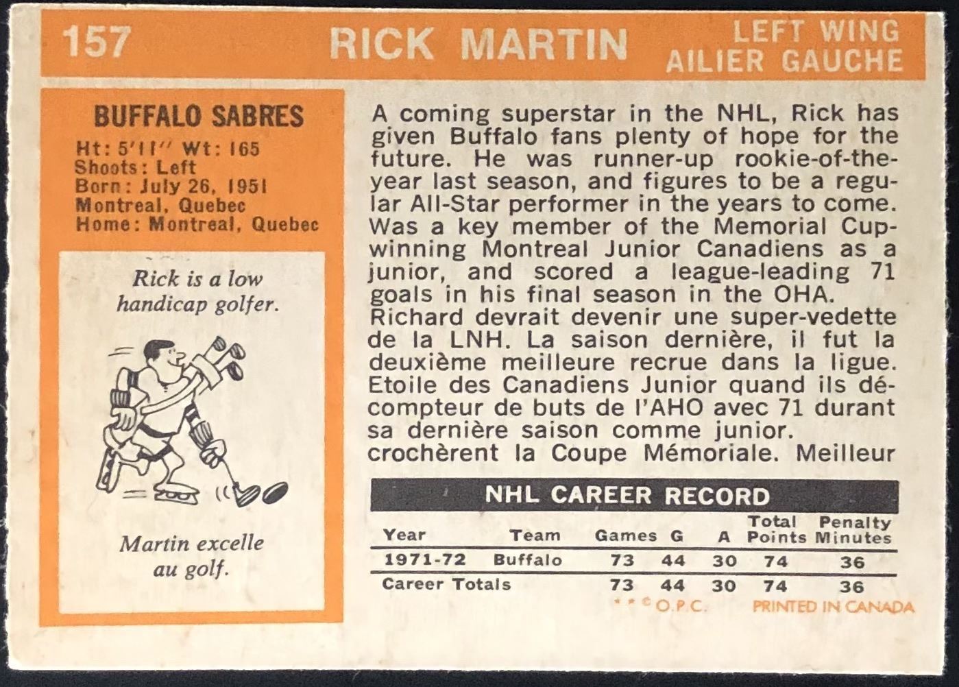 Card #157 NHL, hockey, vintage, OPC, hall of fame