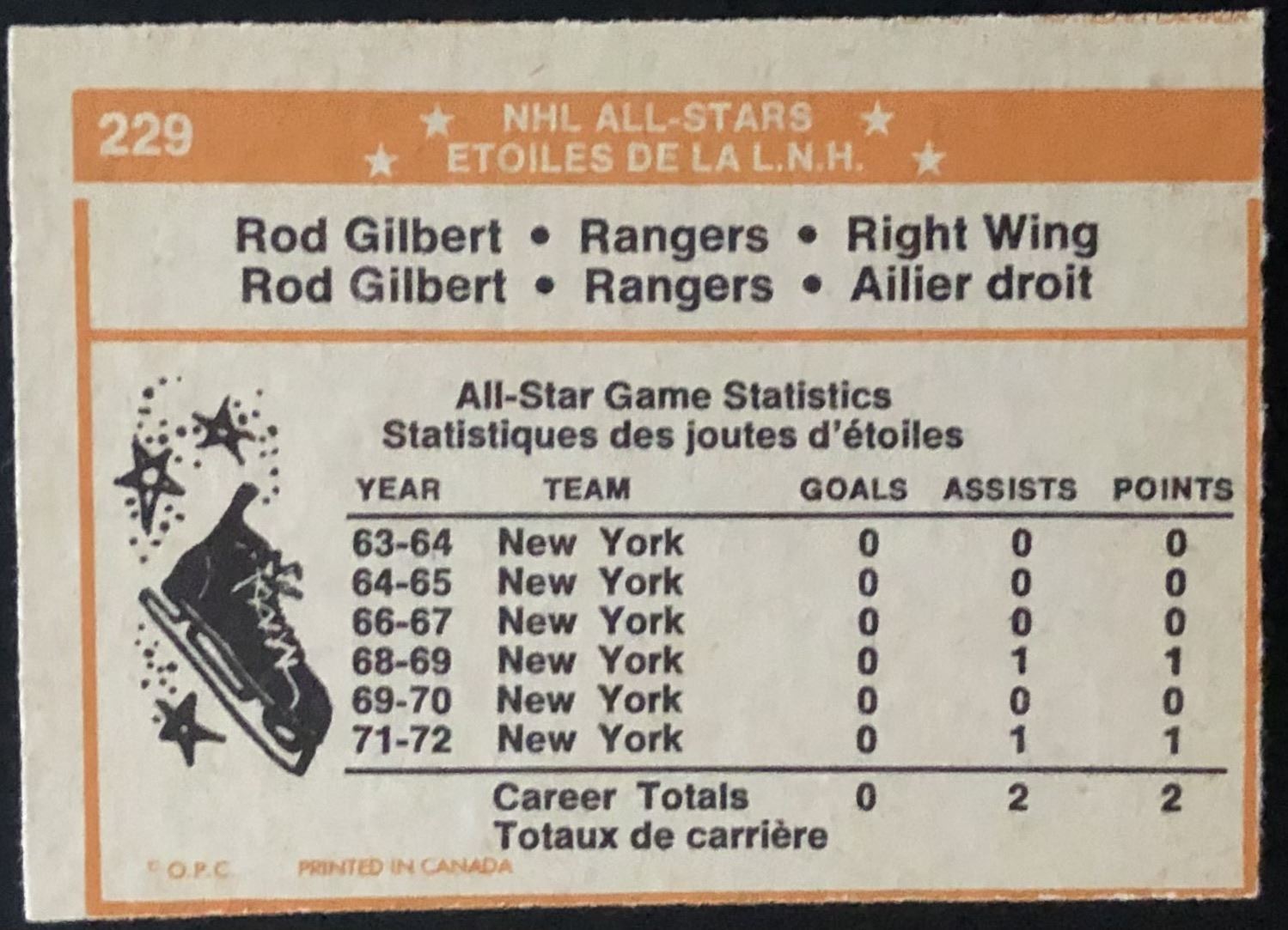 Card #229 OPC, vintage, NHL, hockey, hall of fame