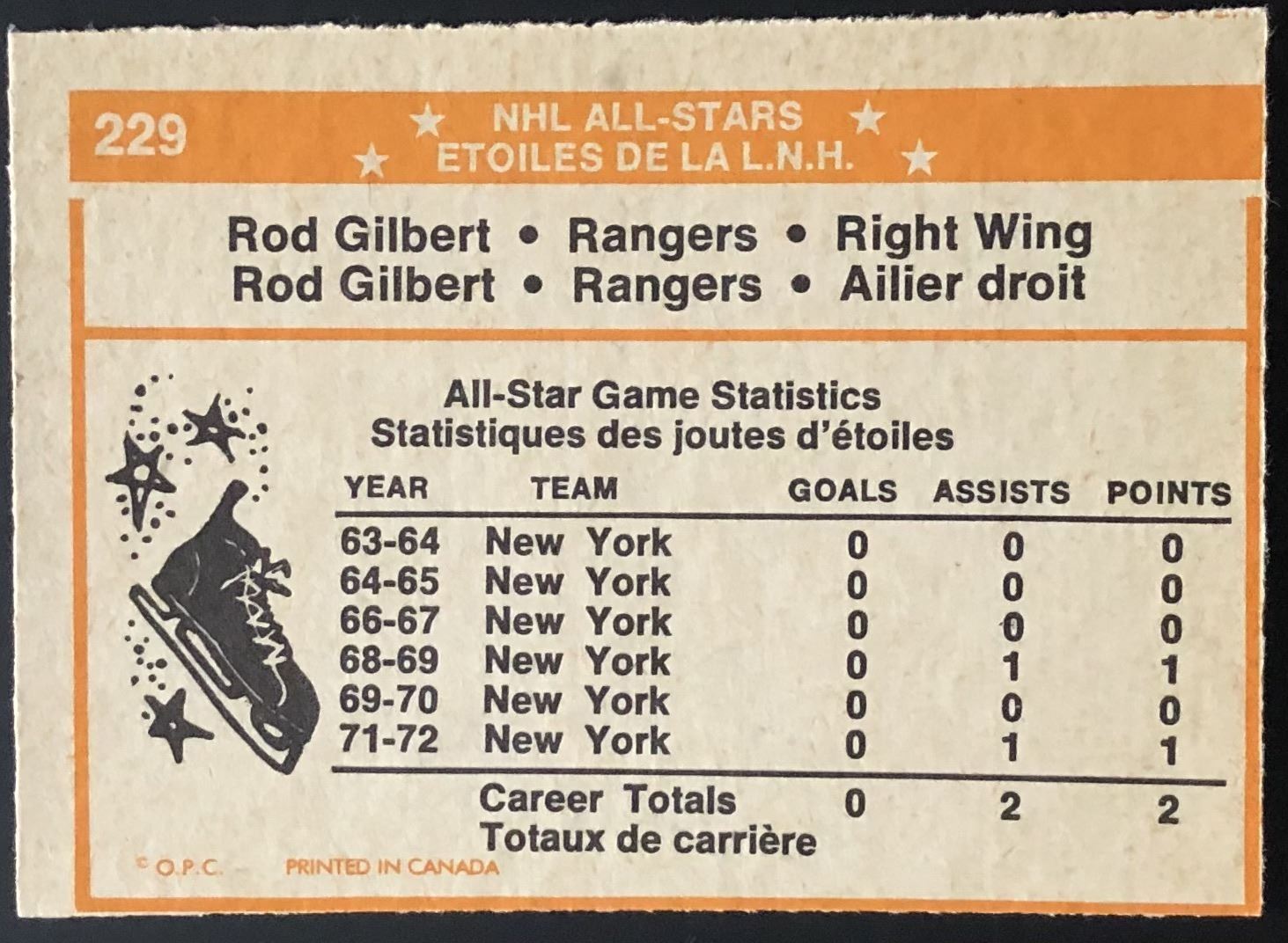 Card #229 NHL, hockey, vintage, OPC, hall of fame