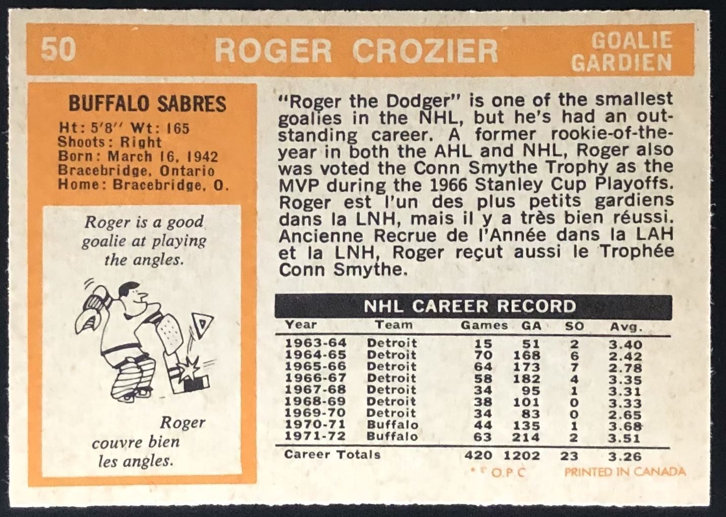 Card #50 NHL, hockey, vintage, OPC, hall of fame
