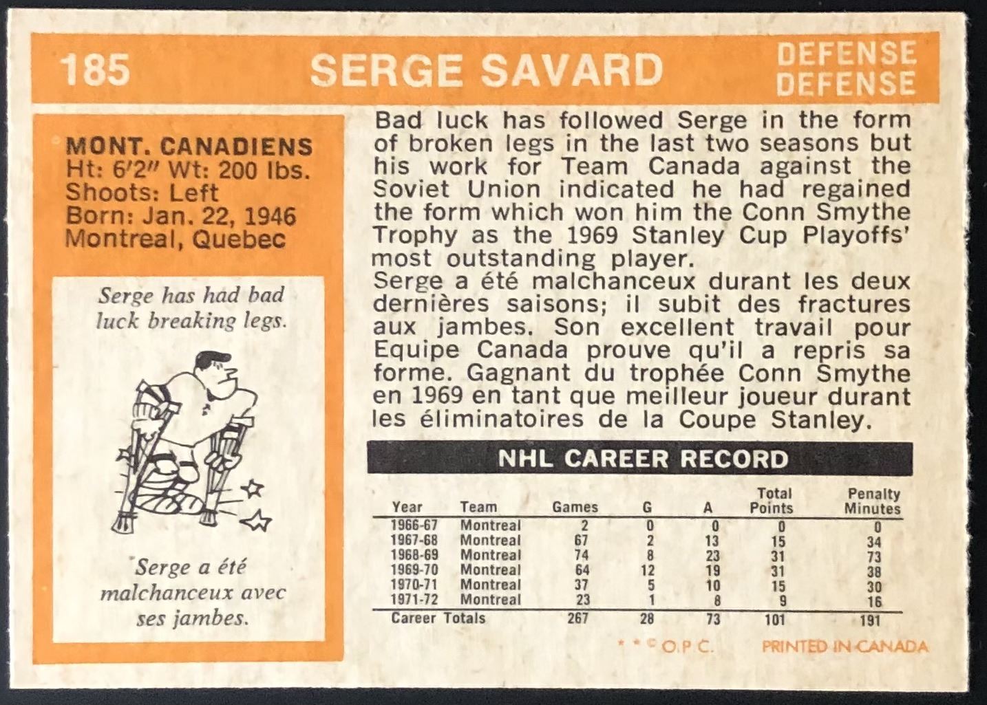 Card #185 NHL, hockey, vintage, OPC, hall of fame