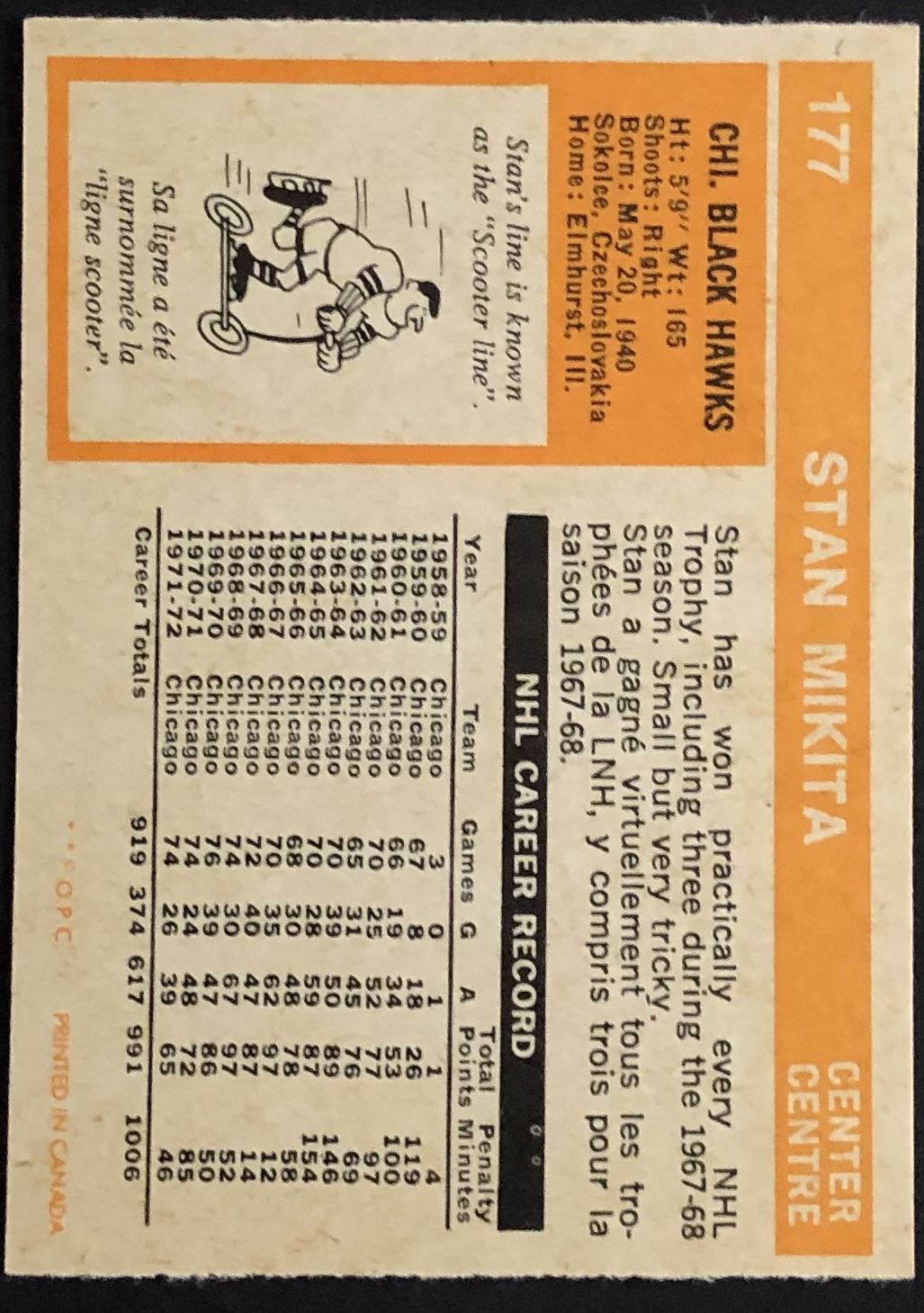 Card #177 NHL, hockey, vintage, hall of fame, OPC