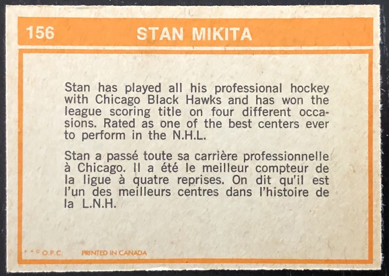 Card #156 NHL, hockey, vintage, OPC, hall of fame