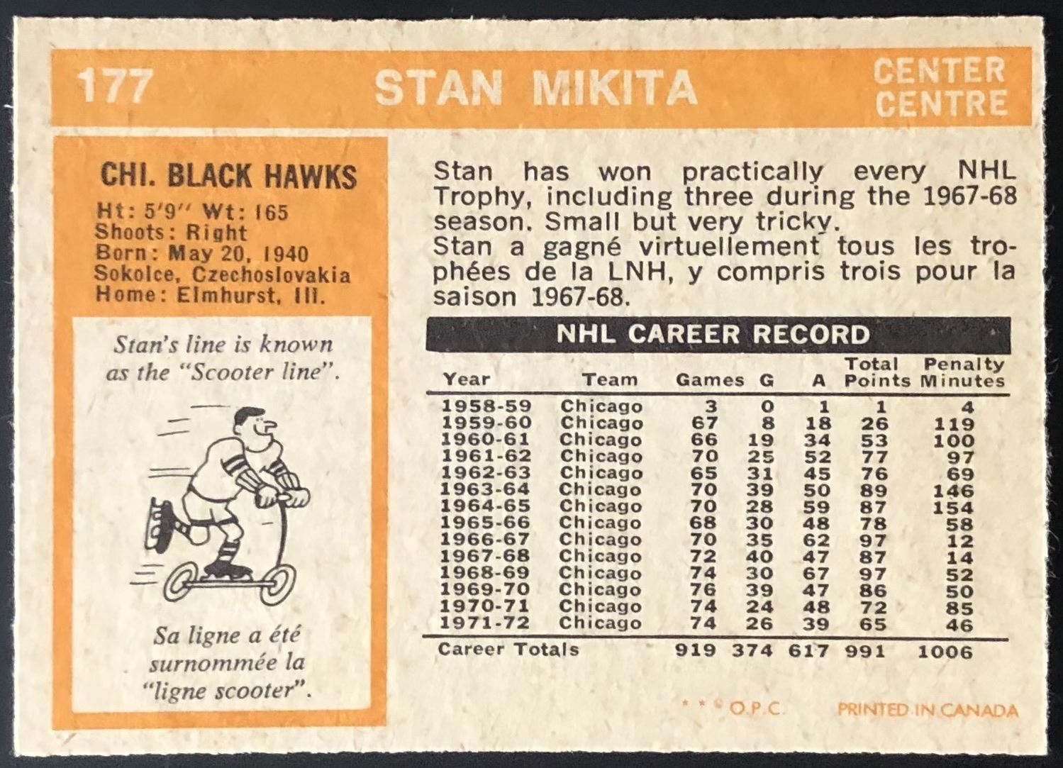 Card #177 NHL, hockey, vintage, OPC, hall of fame
