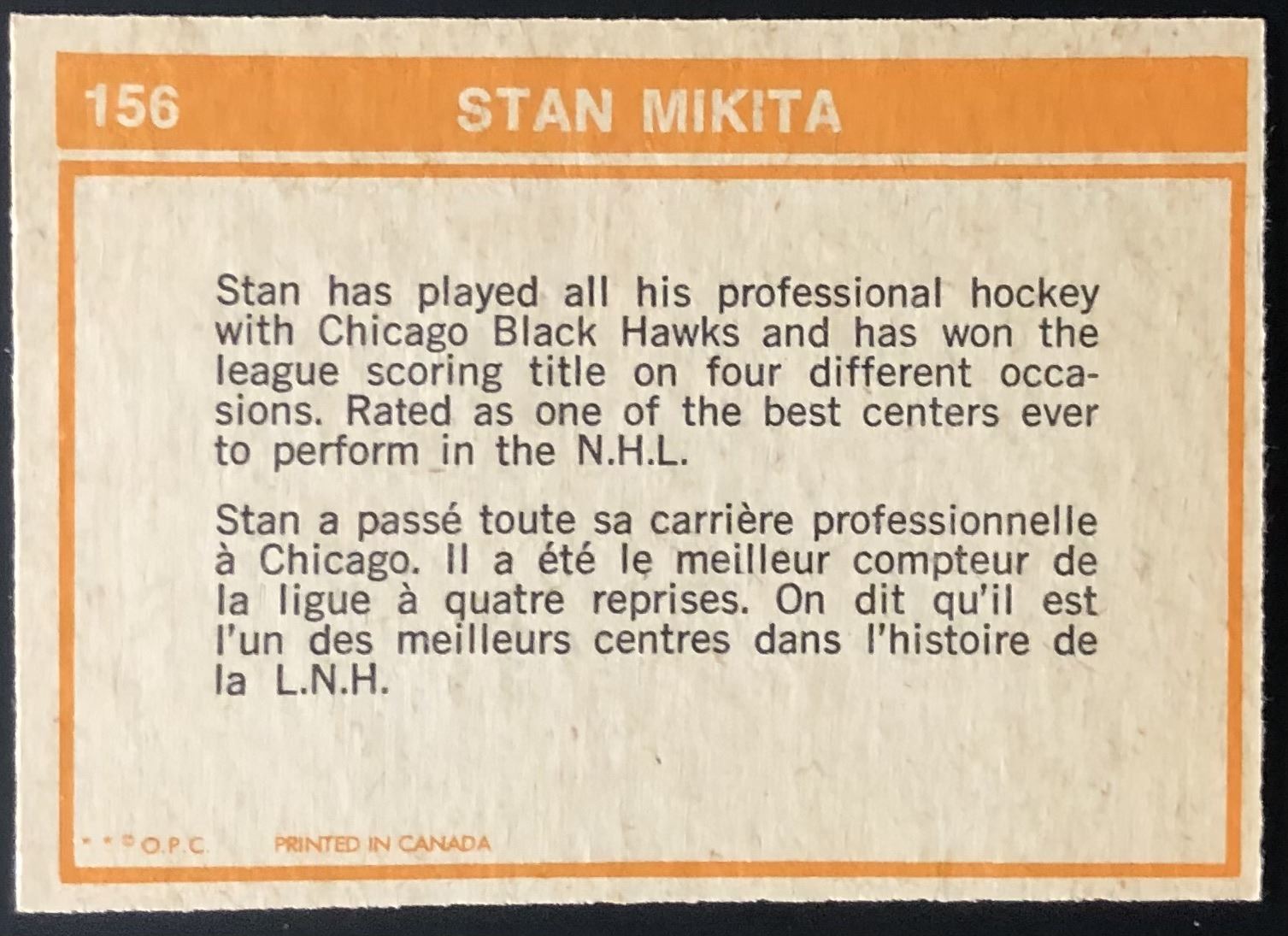 Card #156 NHL, hockey, vintage, OPC, hall of fame