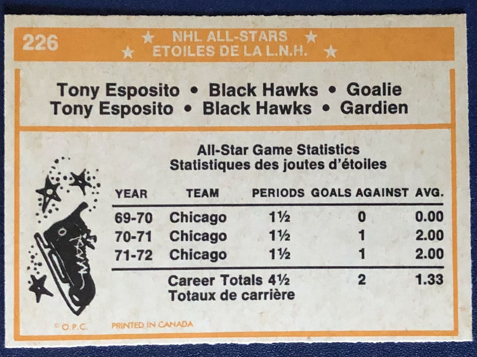 Card #226 vintage, hall of fame, hockey, NHL, OPC