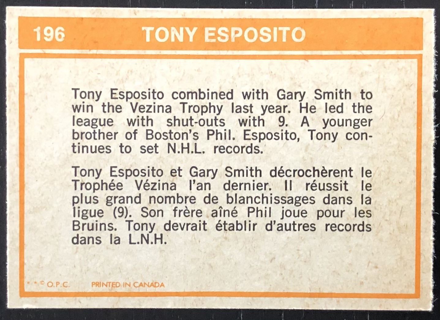 Card #196 NHL, hockey, vintage, OPC, hall of fame