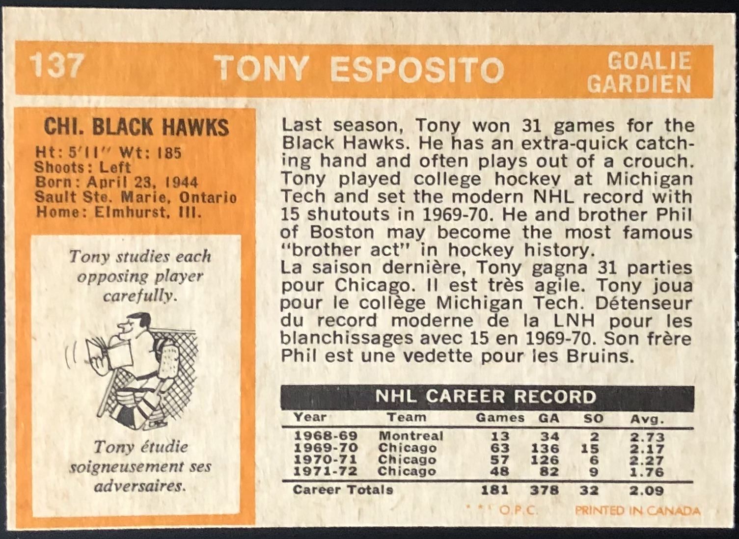Card #137 NHL, hockey, vintage, OPC, hall of fame
