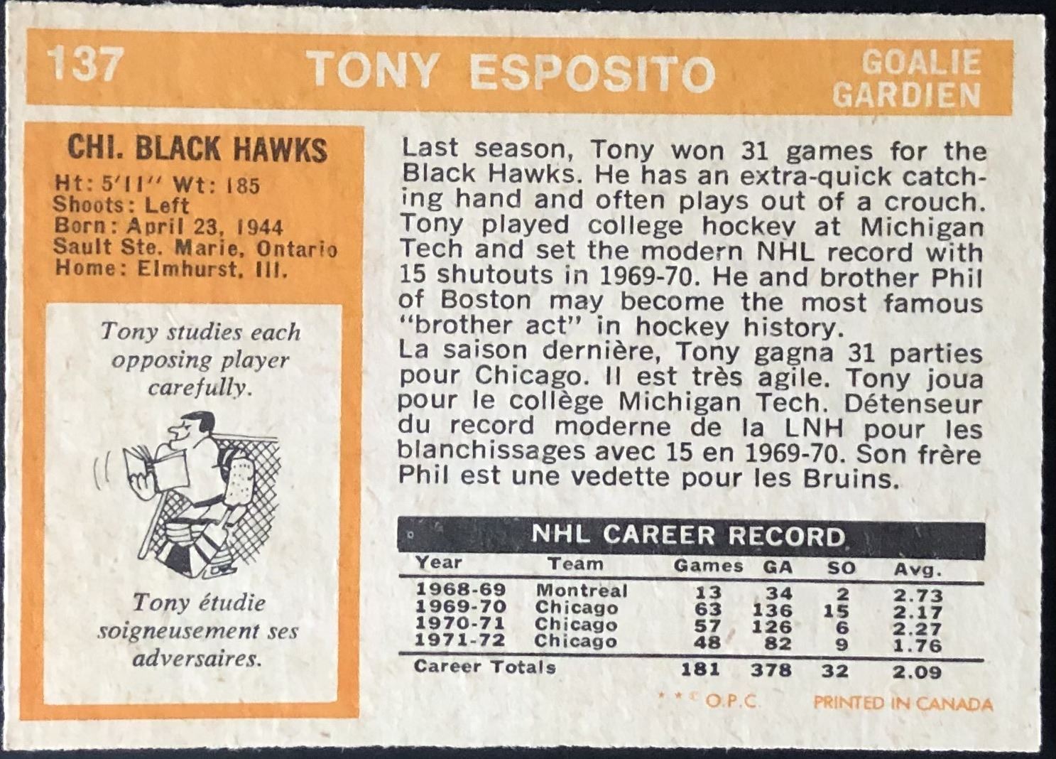 Card #137 hockey, NHL, vintage, OPC, hall of fame